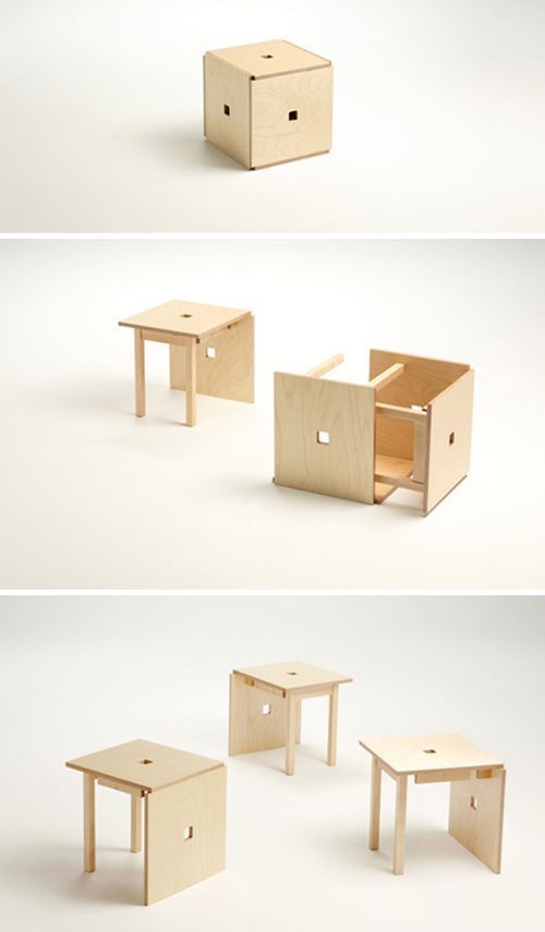 Cube Six - Dřevěná kostka je složena ze šesti židlí ...