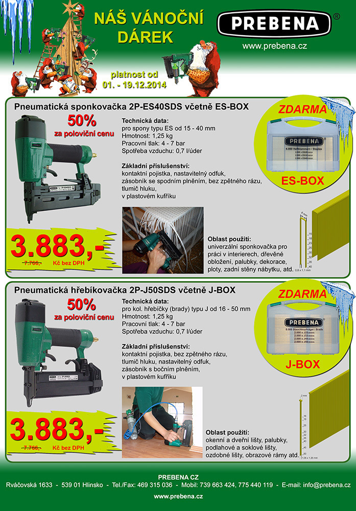 Vánoční dárek od firmy PREBENA: PNEUMATICKÁ SPONKOVAČKA A HŘEBÍKOVAČKA