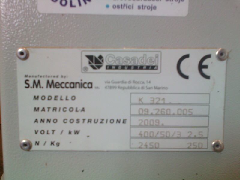 Prodám olepovačku hran Casadei K321, rok výroby 2009, uvedení do provozu rok 2010, nový podávací pás, nový řemen pohonu frézek, pečlivá údržba stroje. Cena je včetně DPH.