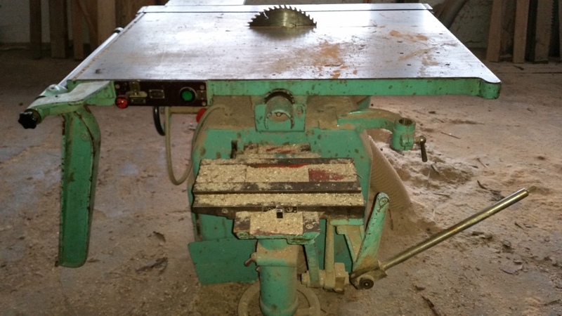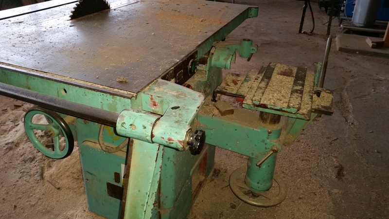 Kotoučová pila s pojezdovým vozíkem a dlabačkou REMO, rok vároby 1972, motor 7,5 kW 7,9 A