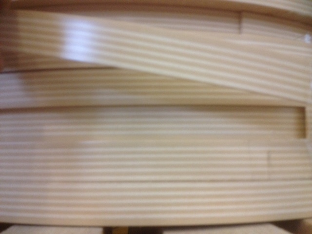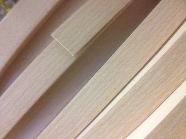 Dýhovaná laťovka -Buk předbroušeno 2800x2050x19 - 23 ks cena m2 475 Kč bez DPH přírodní nákližek (22x3) -725 bm , bm 15Kč