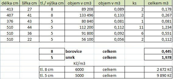 plus další prkna z volného uložení dle výběru.