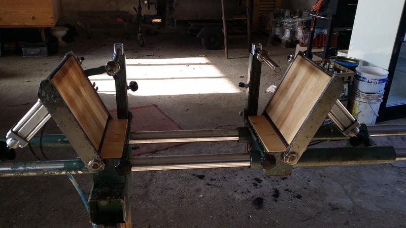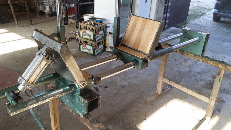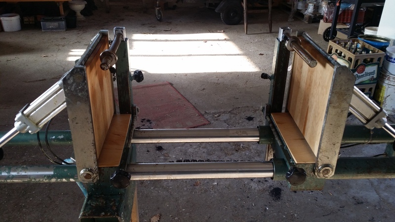 Pneumatický korpusový lis na skříňky a zásuvky do rozměru 110 x 50 x 30cm.
