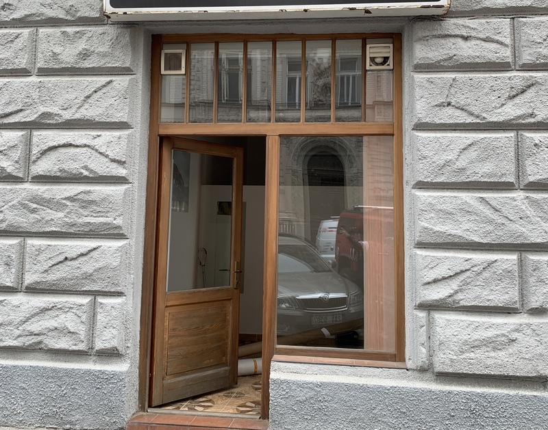 sháníme truhláře, který by nám v horní části výlohy dokázal vybudovat výklopné okno (jako se používají např. ve sklepech), které by se vyklápělo dovnitř do provozovny. Okno by bylo ve výloze nad dveřmi - část výlohy by se přetvořila na okno, viz. plánek. Při vybudování okna by se nesmělo zasahovat do zdiva, pouze do dřevěného rámu výlohy.