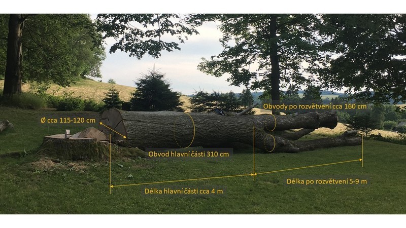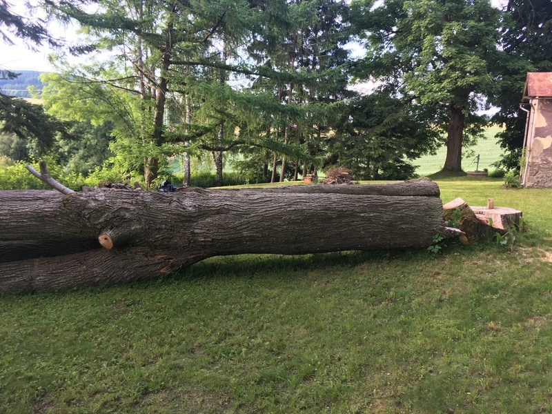 Prodám kmen lípy kácené 24.04.2021. Rozměry viz foto. Možno i po částech. Cena dohodou.