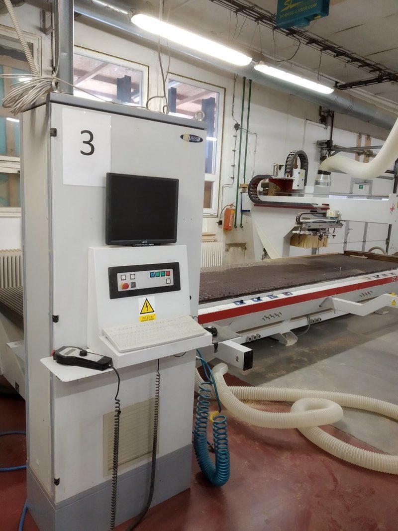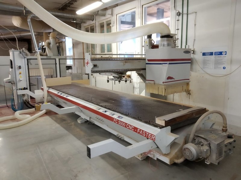Frézovací centrum FC 5000 CNC – FASTER v.č. 159 s pevným vakuovým stolem, dvě pracovní zóny, elektrovřeteno 8 kW s pneumatickým uvolněním nástroje a keramickými ložisky ISO 30 ( 0 – 24 000 ot/min ). Pracovní stůl KARTIT se závity M8 v rastru. 1x kužel ISO30 s kleštinou ER32 a 1x kužel ISO30 s kleštinou ER40, přípravek pro utahování matice.