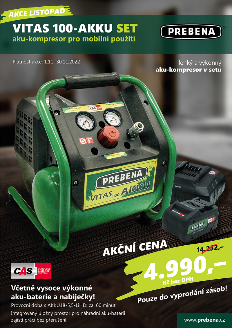 PREBENA akce listopad: Aku-kompresor VITAS 100-AKKU SET