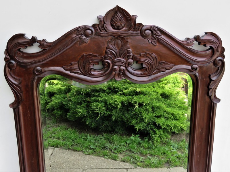 Prodám vyřezávaný mahagonový rám s fazetovým zrcadlem,