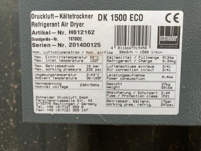 K prodeji nabízíme dílenský pístový kompresor Schneider HW 650-270 ST včetně sušičky Schneider DK 1500 EKO.