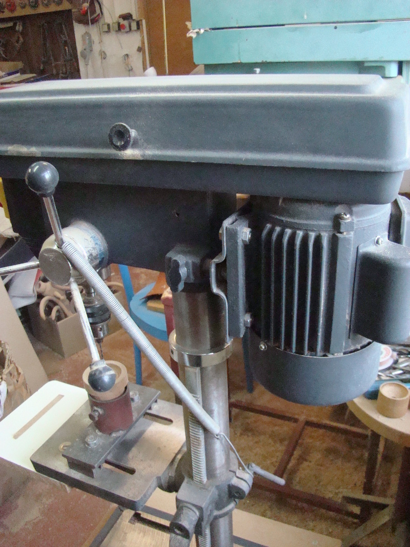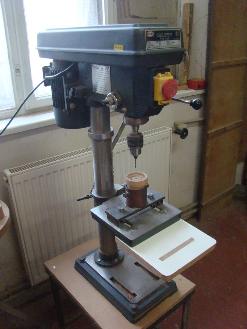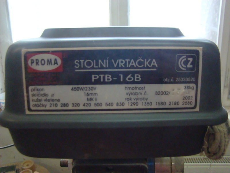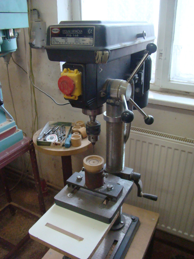 Vrtačka je přišroubovaná na podstavci vysokém 50 cm. Málo používaná. Sklíčidlo 16 mm. . Pultík 13x20 cm. Přidaná pružina pro zvednutí vřetene vrtačky . Rok výroby 2002