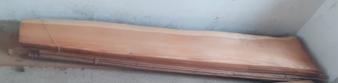 Starší modřínové dýhy cca 100 listů, délka cca 2m, šířka 20-40cm. Jeden konec vždy užší. Konce jsou občas rozlomené. Praha 4. 30kč/list