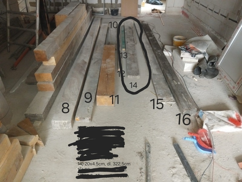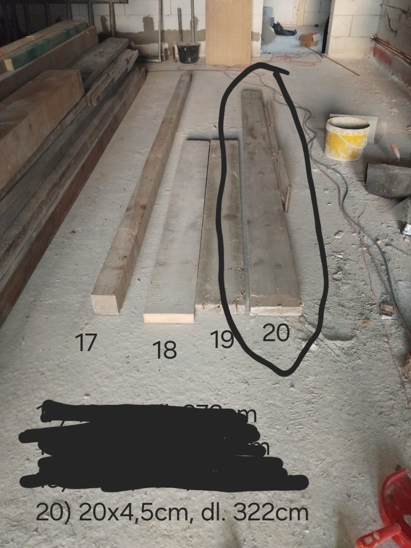 Stavební hranoly 20x4.5x322cm, vysušené dřevo, č.20 je 20 let staré. Celkem dva kusy. Každý pořízen za 376kc, prodáváme za 150kc za kus. Pouze osobní odběr Kladno.