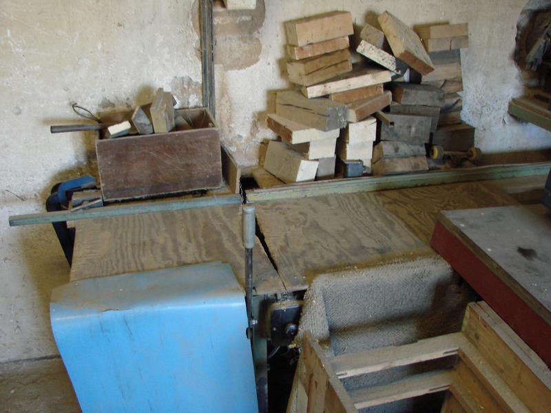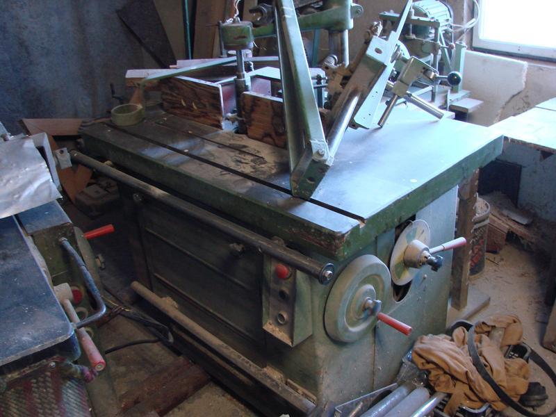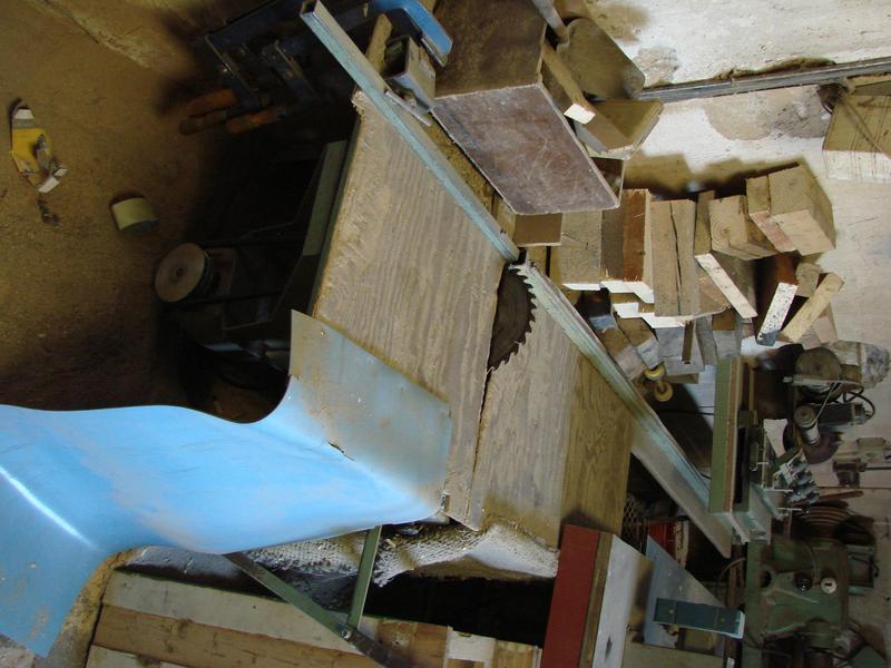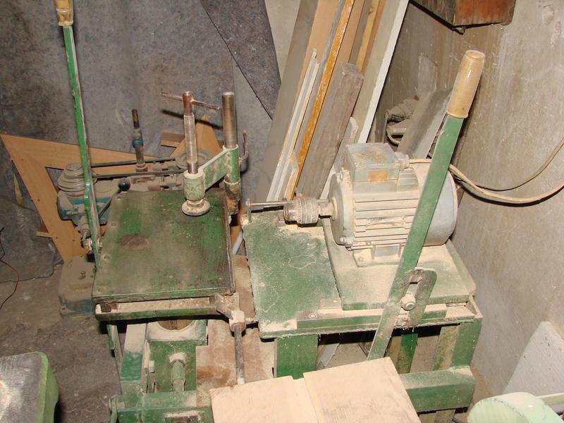 Stroje domací výroba: soustruh na dřevo, dlabačka, čepovka, cirkulárka s vodítkem, zakracovací pila se stolem a vodítkem, bruska na nože do hoblovky, kotoučová bruska se smirkovým papírem. A k tomu veškeré příslušenství - frézy, dlabací vrtáky, pilky, pily, truhlářský ponk, dláta, panty, atd. Nutno vidět.