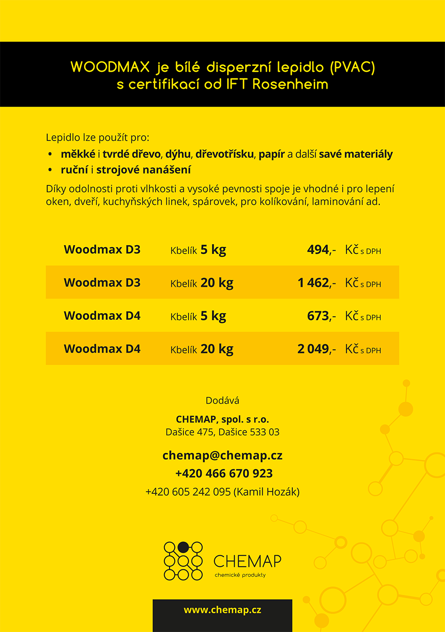 Lepidla WOODMAX nabízíme za cenu „s dodáním až k ponku“.
